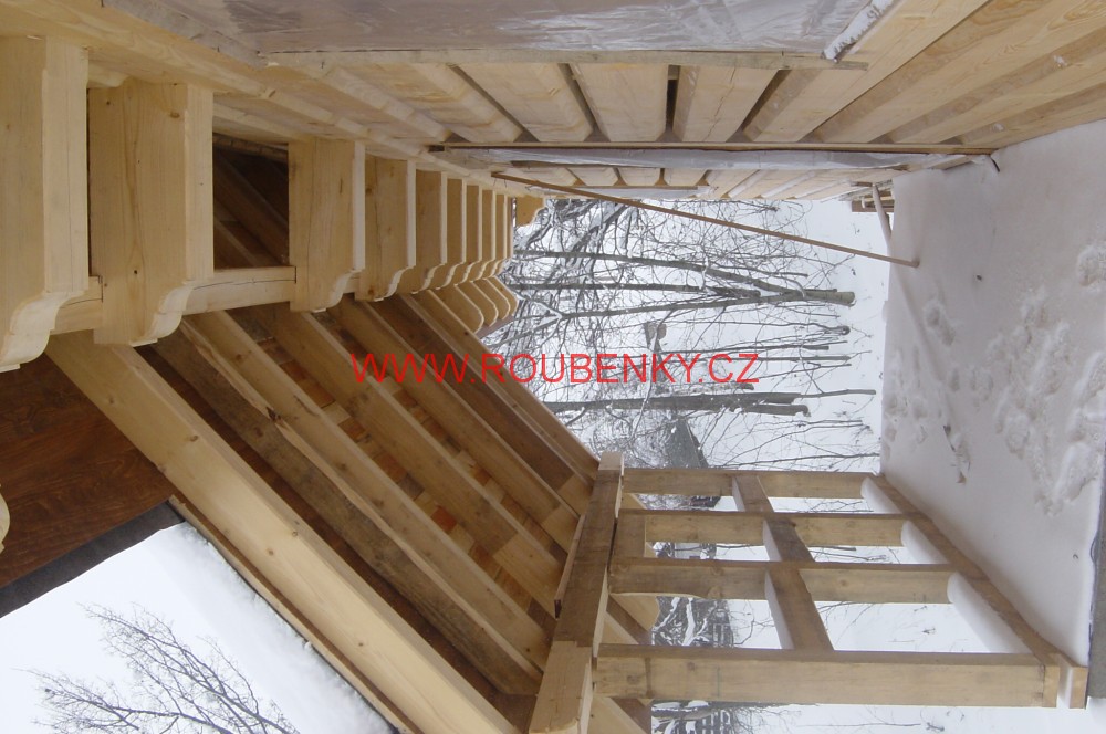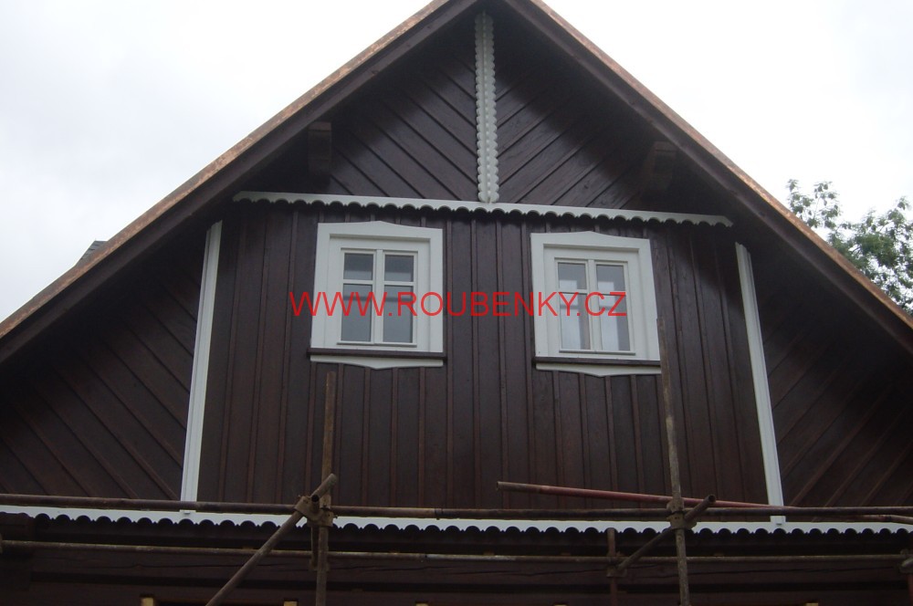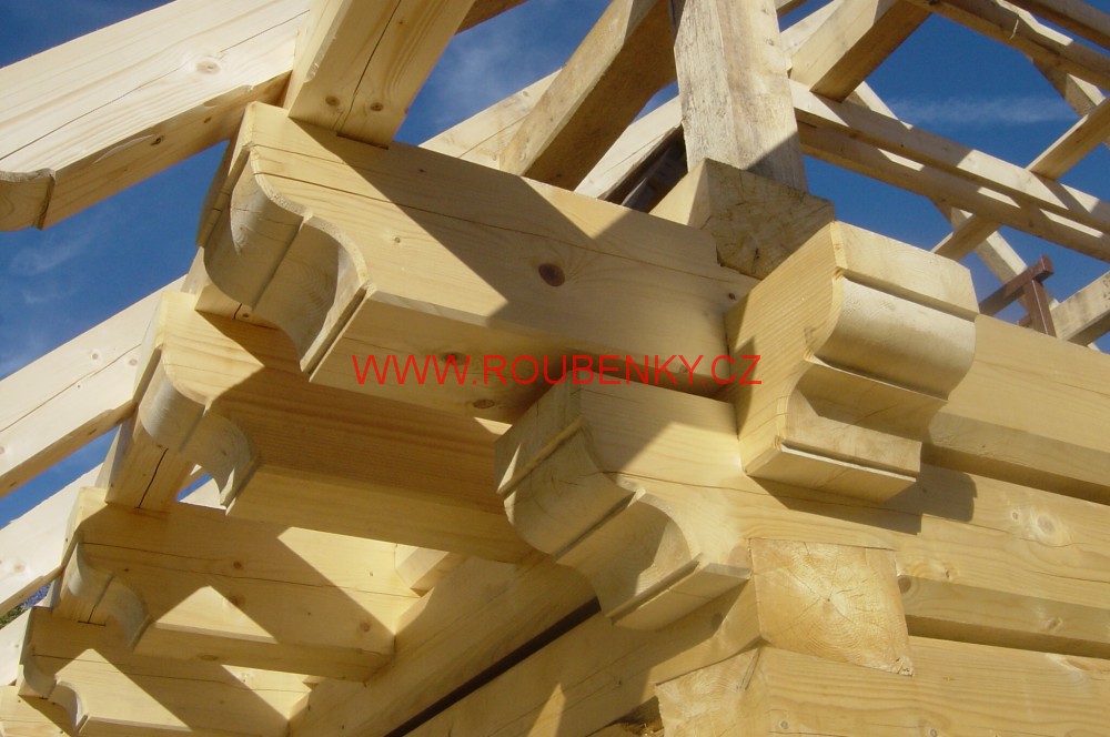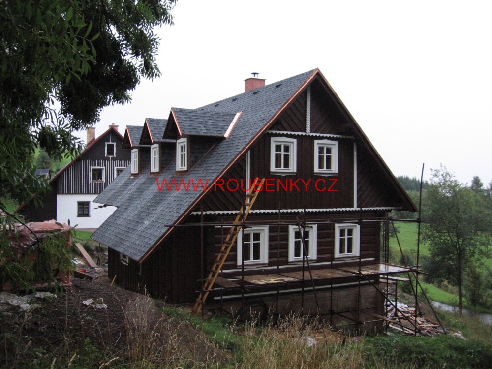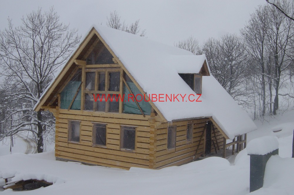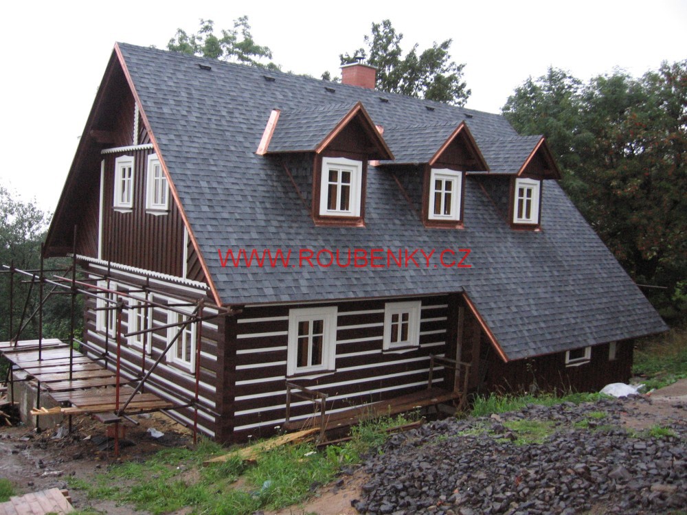 Fotografie ze stavby roubené chalupy, kterou jsme stavěli v Jestřabí v Krkonoších.